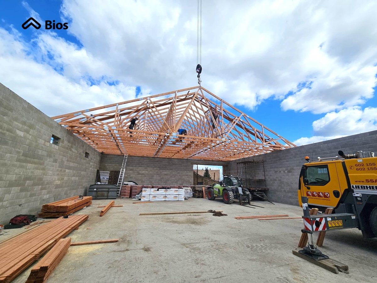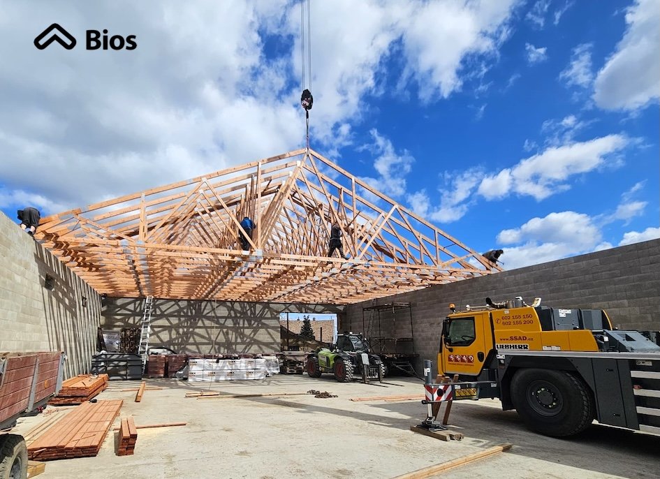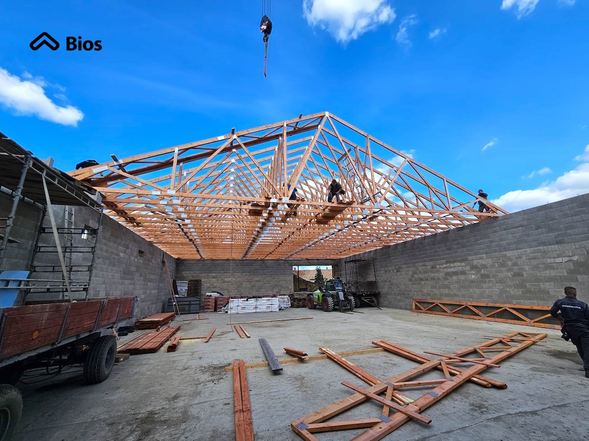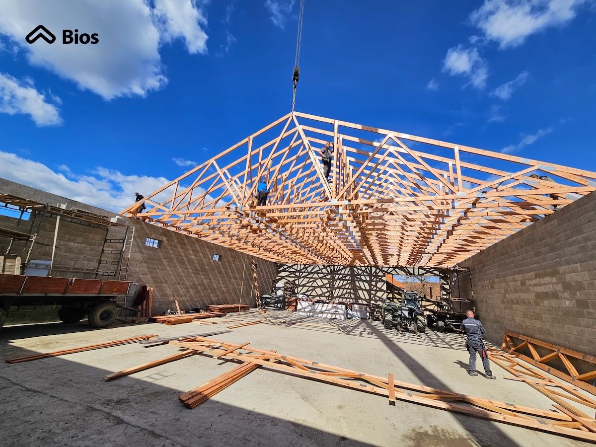 V BIOSu jsme zvyklí na výzvy – a jedna taková k nám dorazila z Rovného. Pro novou halu o rozměrech 18,7 × 30 metrů jsme navrhli a vyrobili dřevěné vazníky, které se rozhodně nevlezou do běžných tabulek. Délka 19,7 metru, výška 4,6 metru – a právě ta výška byla v projektu klíčová.
